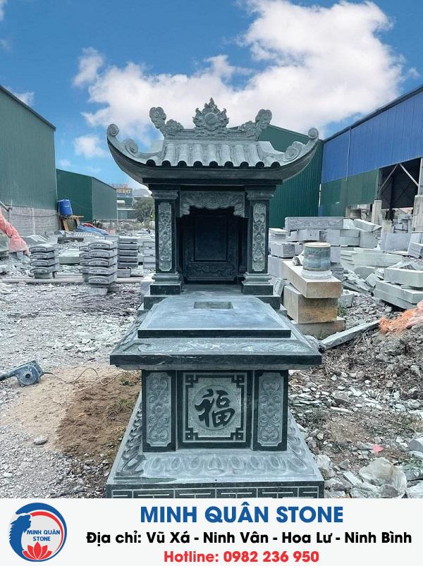 Đá tự nhiên xanh đen là nguyên liệu phổ biến nhất để chế tác lăng mộ thờ. Đây là loại đá có vẻ đẹp cổ điển và trầm ấm, phù hợp với không gian tâm linh. Với giá cả hợp lý, sản phẩm đá xanh đen tự nhiên từ Minh Quân Stone luôn được lựa chọn kỹ càng, cam kết về chất lượng và các yếu tố quan trọng như độ nét, màu sắc đồng đều, tránh hiện tượng vết nứt hay thấm nước. Đây chính là những yếu tố quan trọng quyết định cho sự hoàn thiện của các sản phẩm đá mỹ nghệ như lăng mộ, mộ đá, cột đá, lăng thờ, lan can đá, cuốn thư đá, với sự tinh tế và độ bền vững tối ưu.